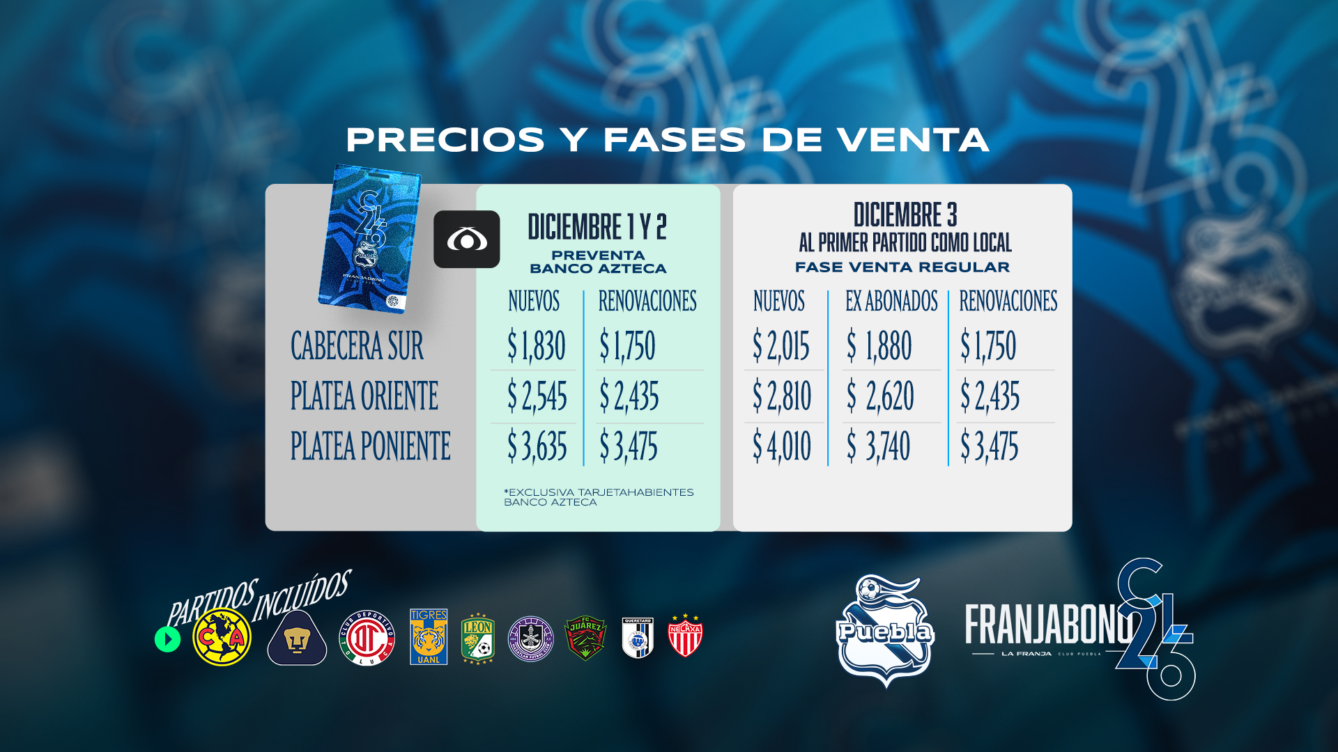 El Franjabono semestral Clausura 2026 incluye los 9 partidos de la fase regular de La Franja y los 9 partidos de La Franja Femenil  como locales en el Estadio Cuauhtémoc(Enero-Mayo 2026)