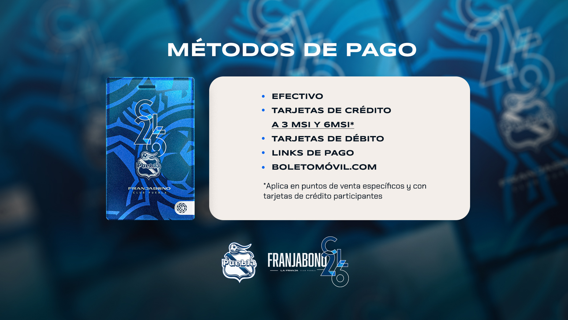 En caso de robo o extravío del Franjabono y para la reposición del mismo, el titular del Franjabono deberá presentar la denuncia y/o constancia de hechos ante la autoridad penal correspondiente, la cual se deberá de presentar en conjunto con la identificación oficial del titular del Franjabono, para que el Club Puebla, revise los documentos y en caso de que aplique se realice la reposición del Franjabono, con un costo para el titular del mismo de $500 (quinientos pesos 00/100 M.N.)